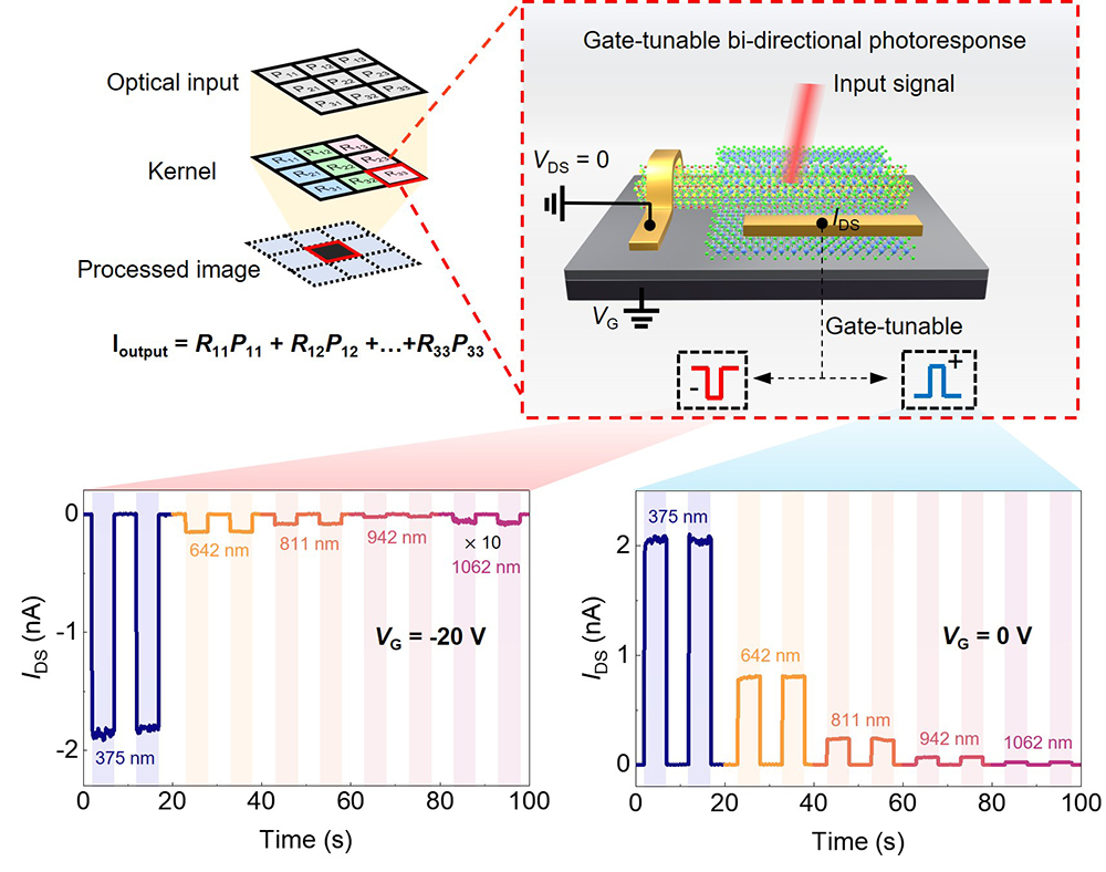 게이트 전압 변화에 따라 양·음 광전류가 전환되며, 인센서 이미지 처리에 활용 가능한 양방향 광응답을 보여줌.
