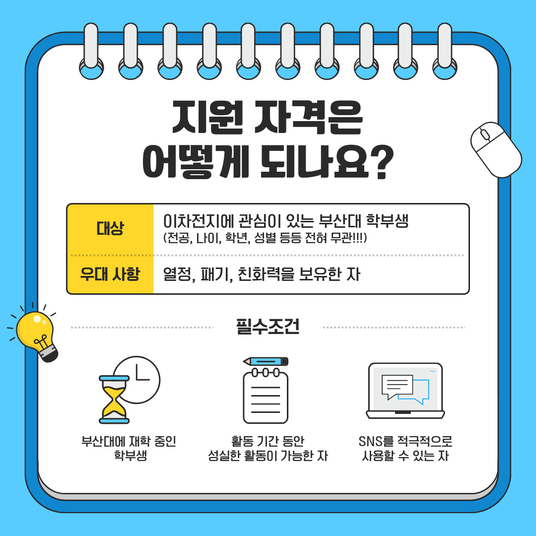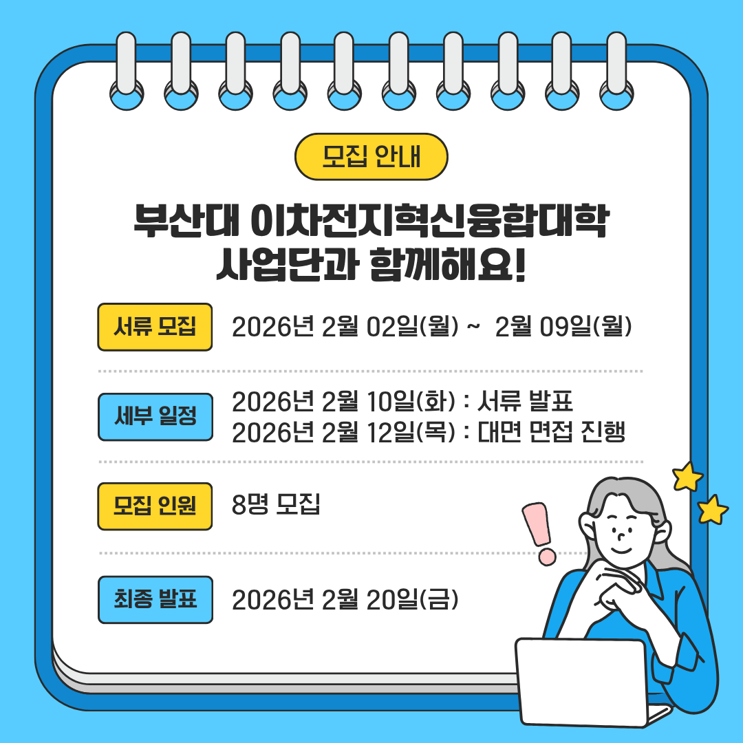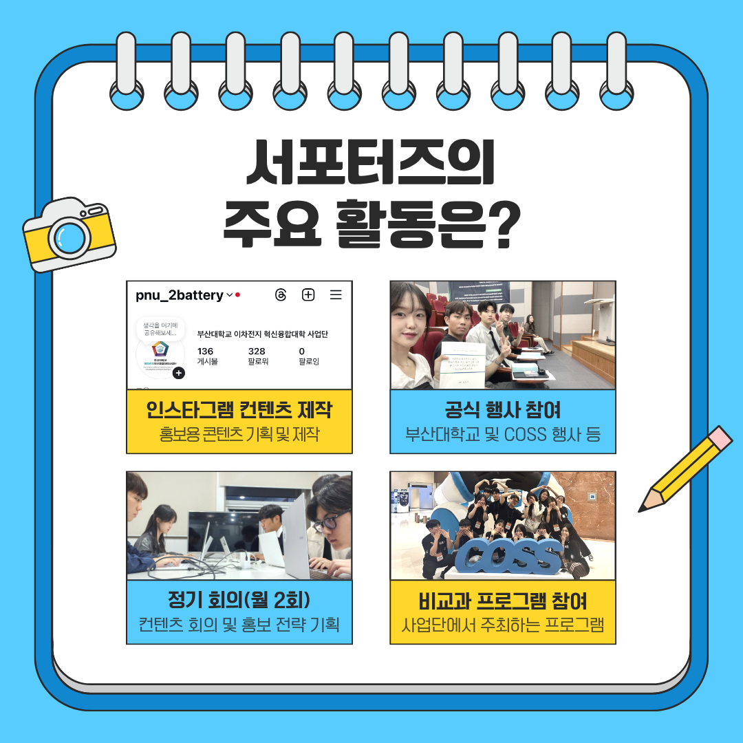 2026학년도 부산대학교 이차전지 혁신융합대학 사업단 상반기 학부생 서포터즈를 다음과 같이 모집하오니 재학생분들의 많은 관심과