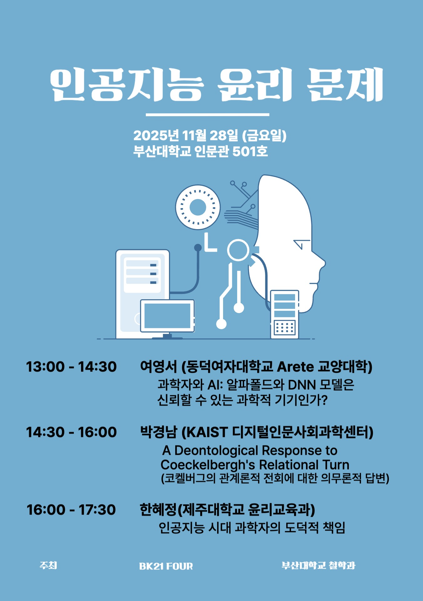 [철학과] (대학원혁신지원사업_BK21) 인공지능 윤리 문제 워크숍 개최 안내(11.28.(금) 13시, 인문관 501호)